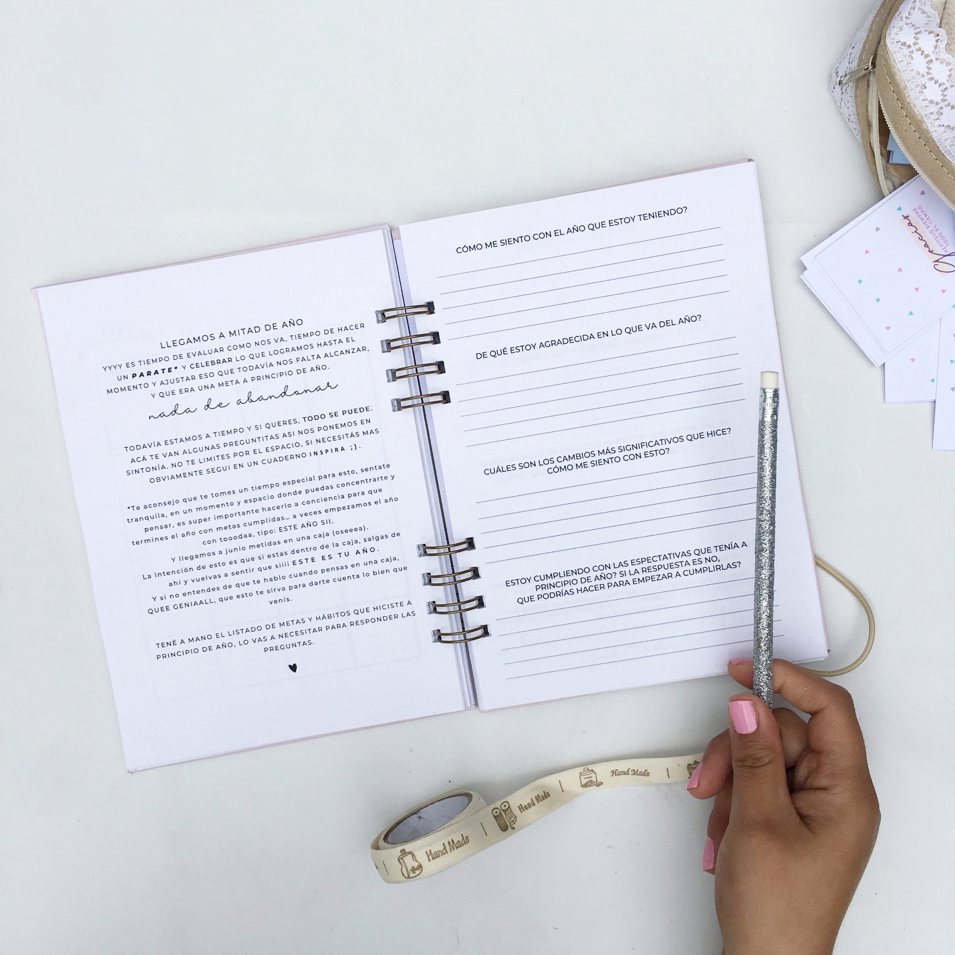 • Elástico y cinta señaladora